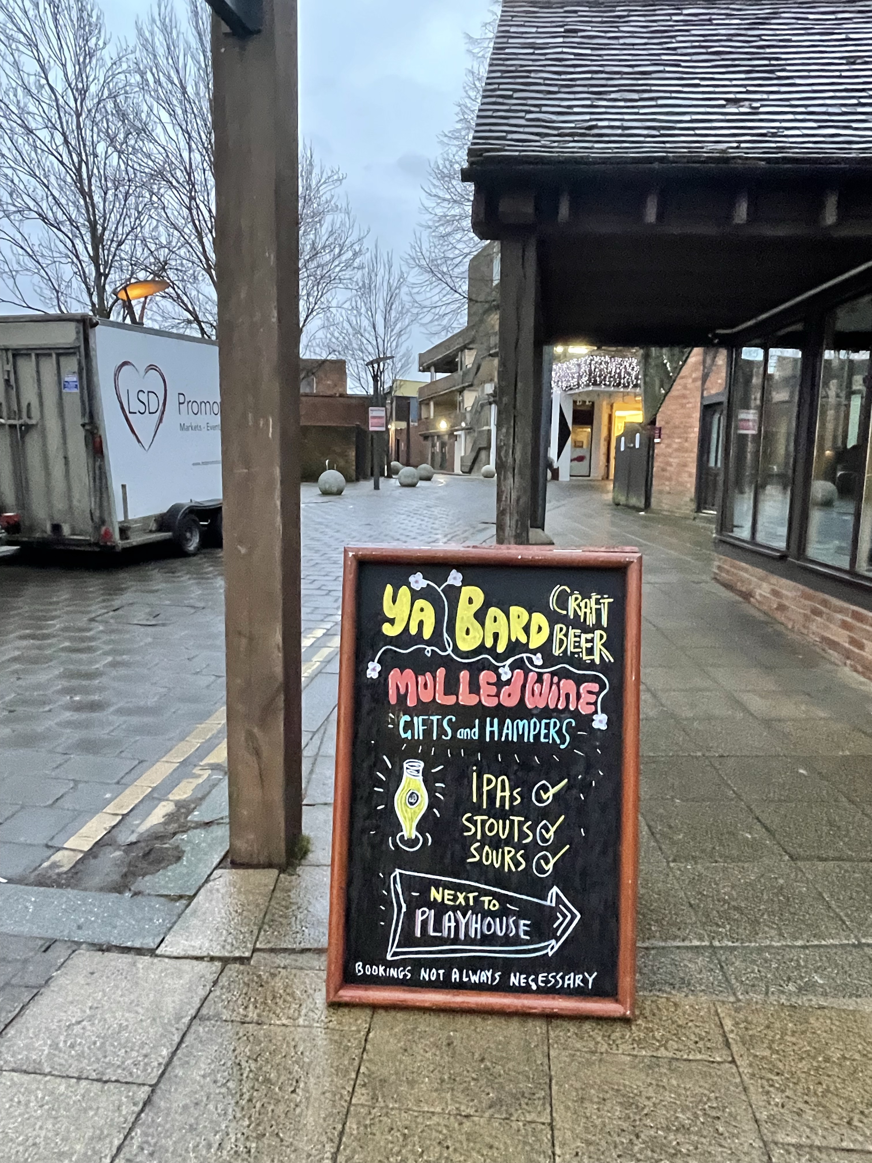 Stratford is to Shakespeare as Edinburgh is to Harry Potter, with the town bearing Shakespearean influences all over. We are staying on Guild Street, between Shakespeare and Great William, and there are cafes and restaurants called Bardia’s and Midsummer Garden and Prospero. The souvenir shop windows house rows of busts of the bard, and his visage can be seen on everything from the canal boats on the river to the walls of the public houses.