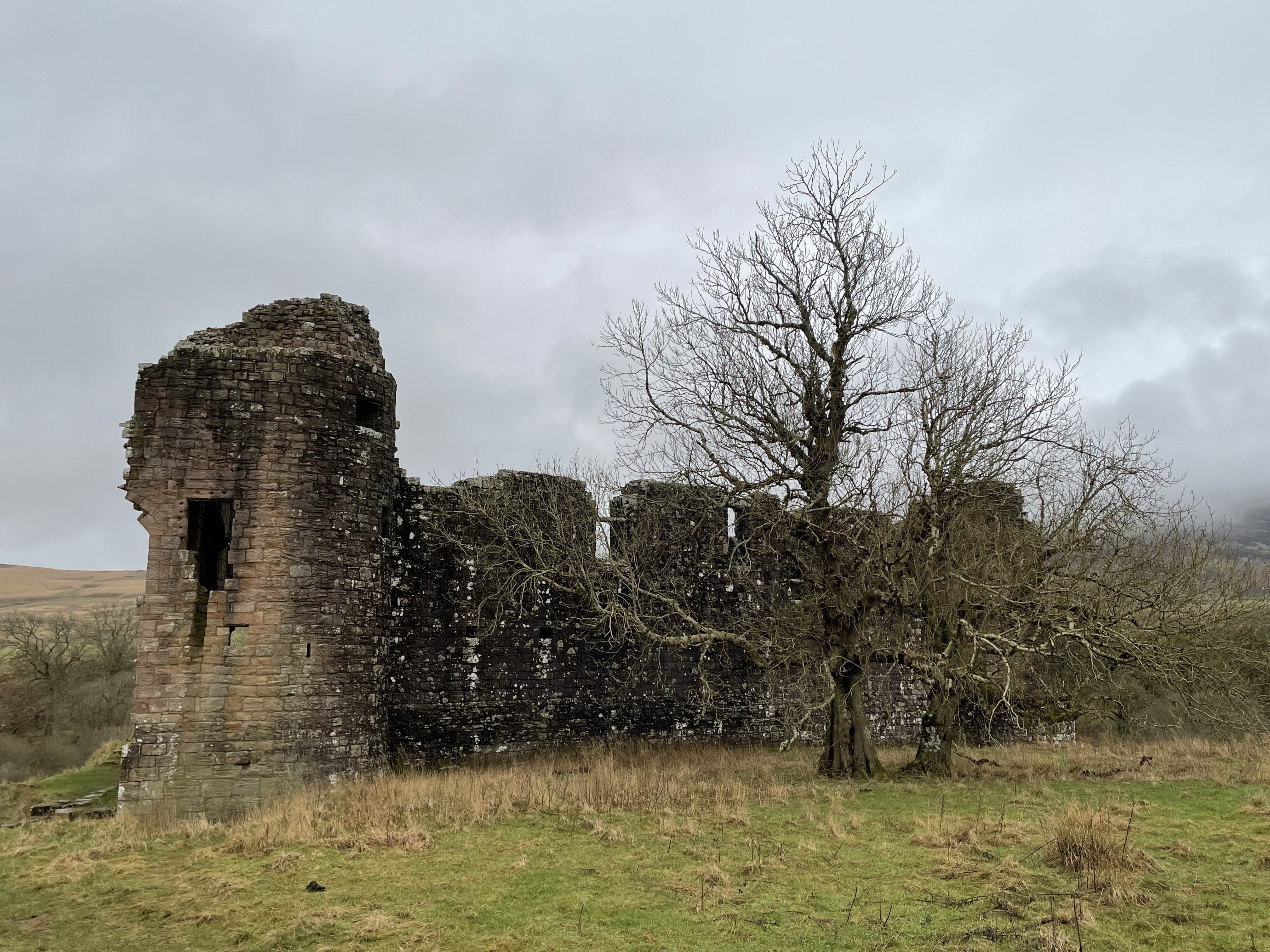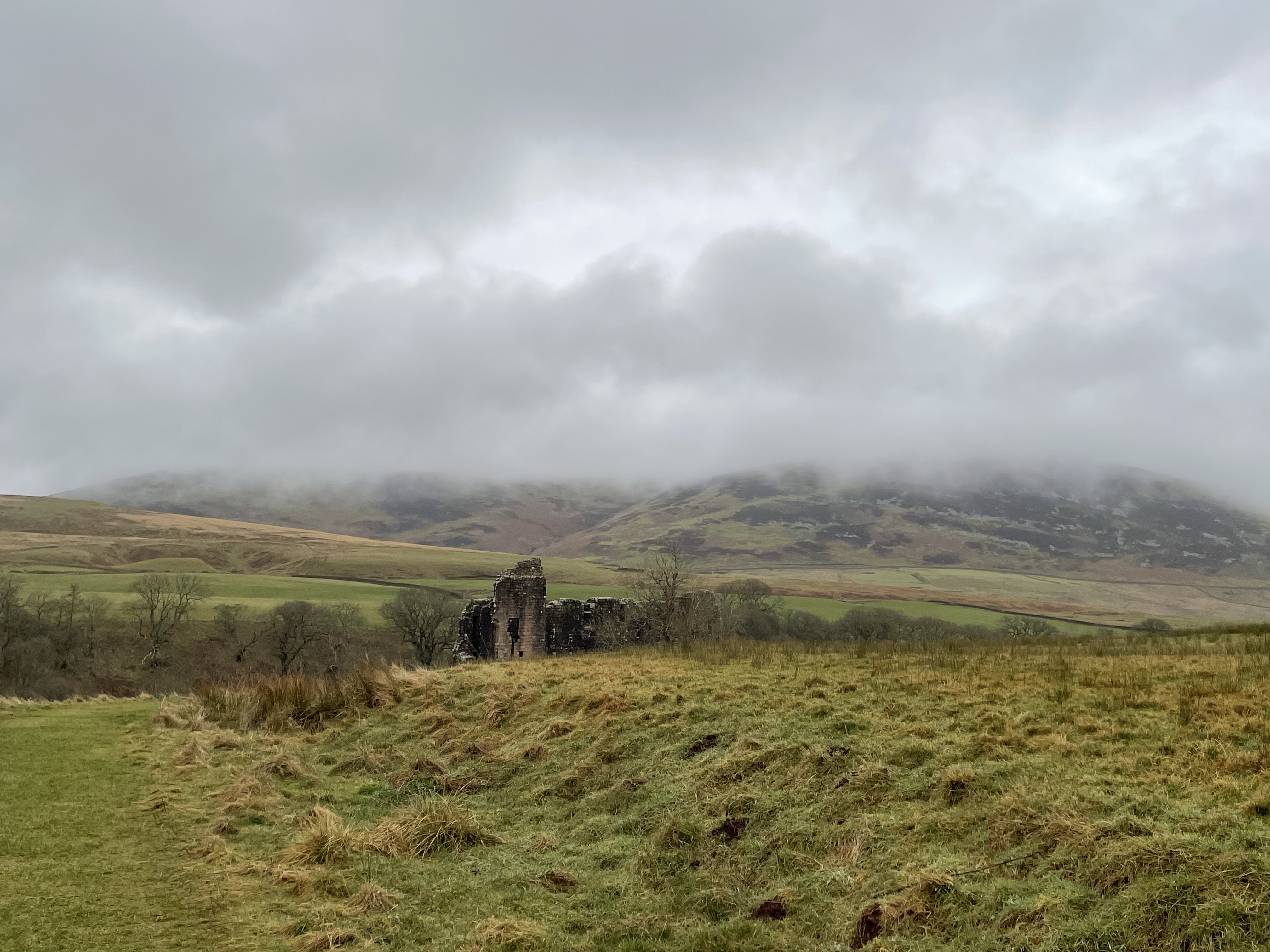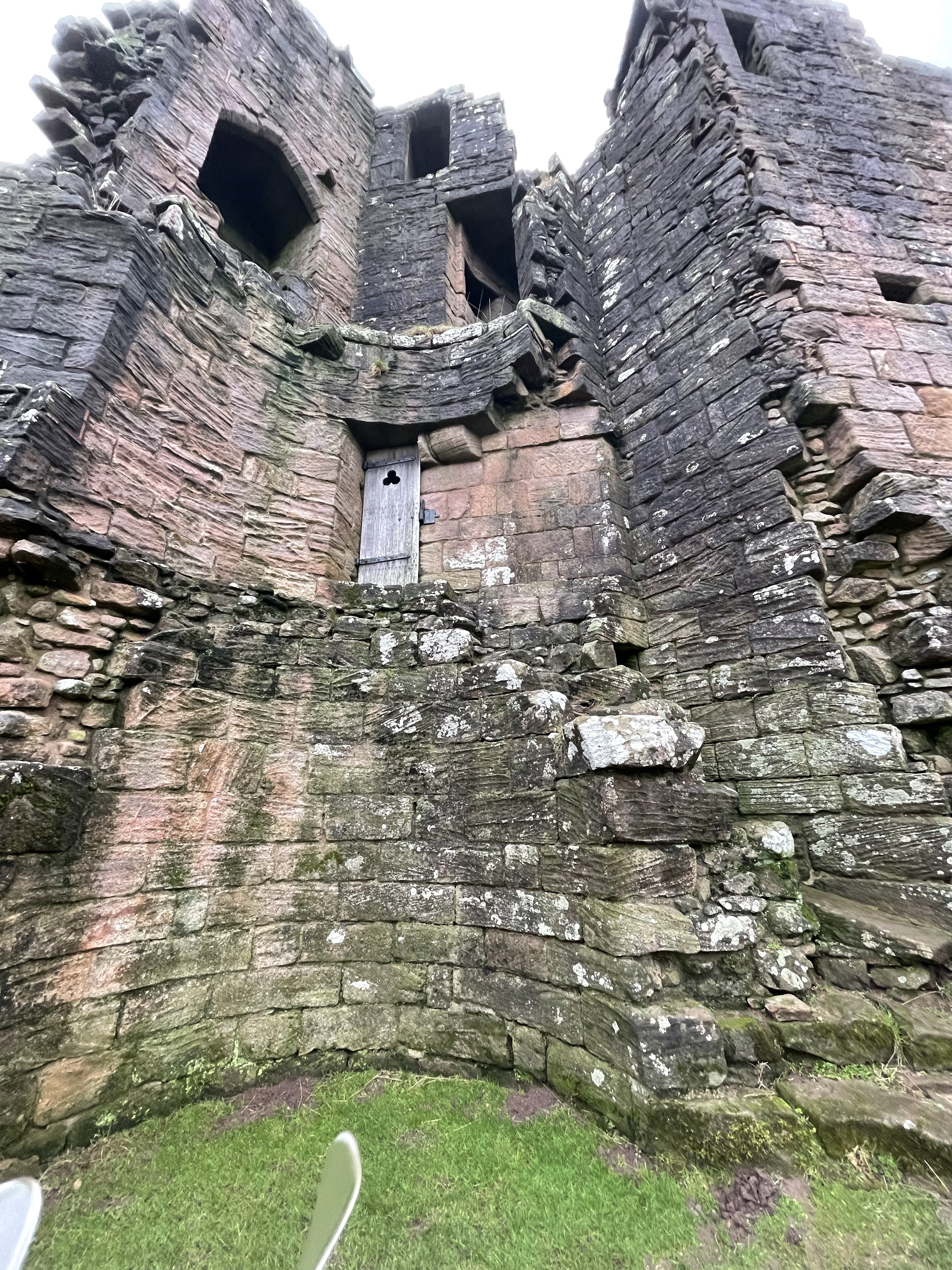 …before finding ourselves on an unsealed version with potholes nearing the size of lochs themselves. Jimmy soldiers on with his trusty Kia and Lucy and I are soon traipsing through the mud (there may have been some actual frolicking), to the ruins of this hall-house, probably built in the late 1200s.