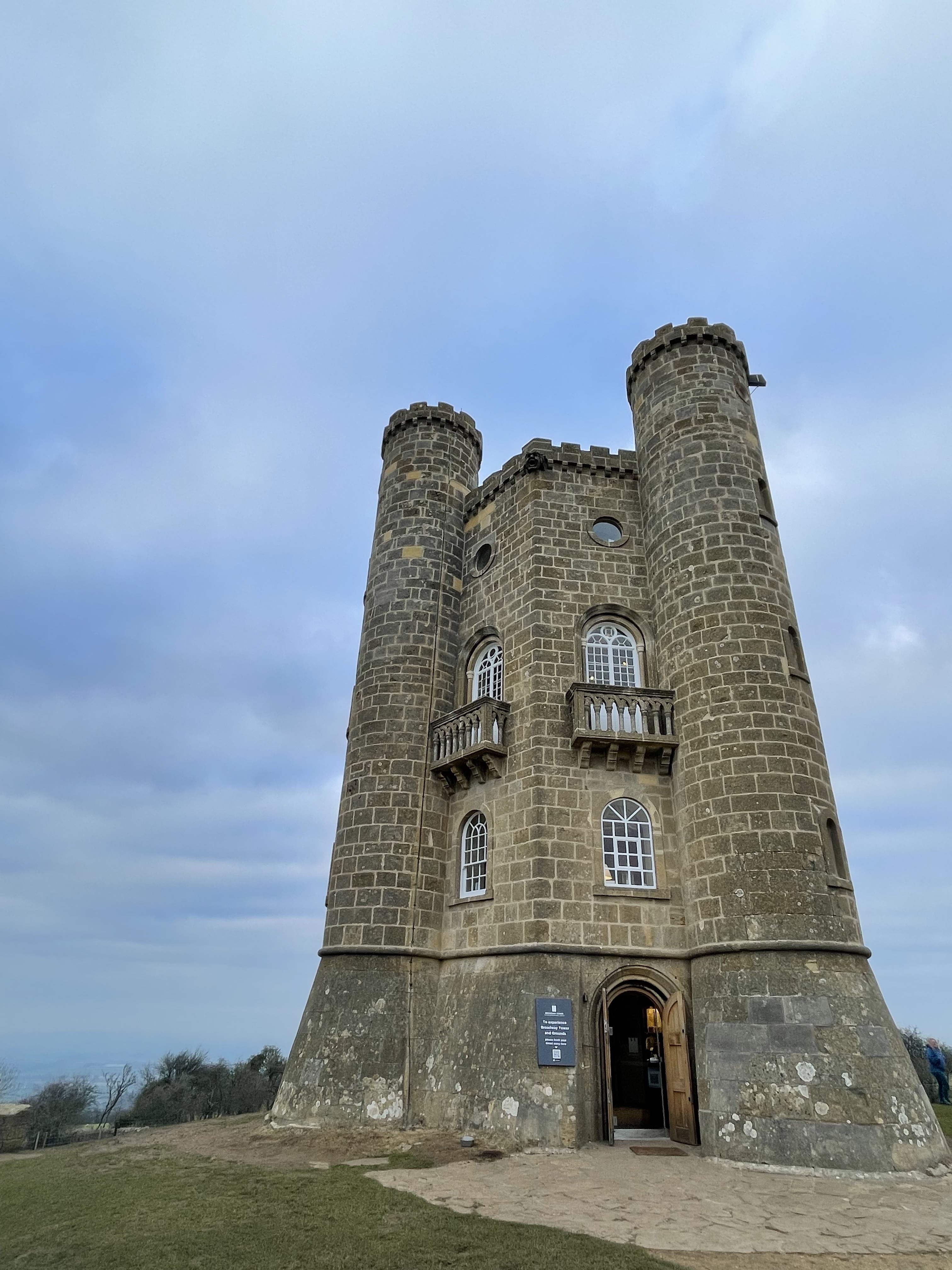 At Broadway Tower, we traipse through the mud in order to snag a photo without extras, and decide not to bother the deer, who have likely had their fill. This photo from atop Broadway Hill, the second-highest point in the Cotswolds, fails to capture the faint outline of distant counties.