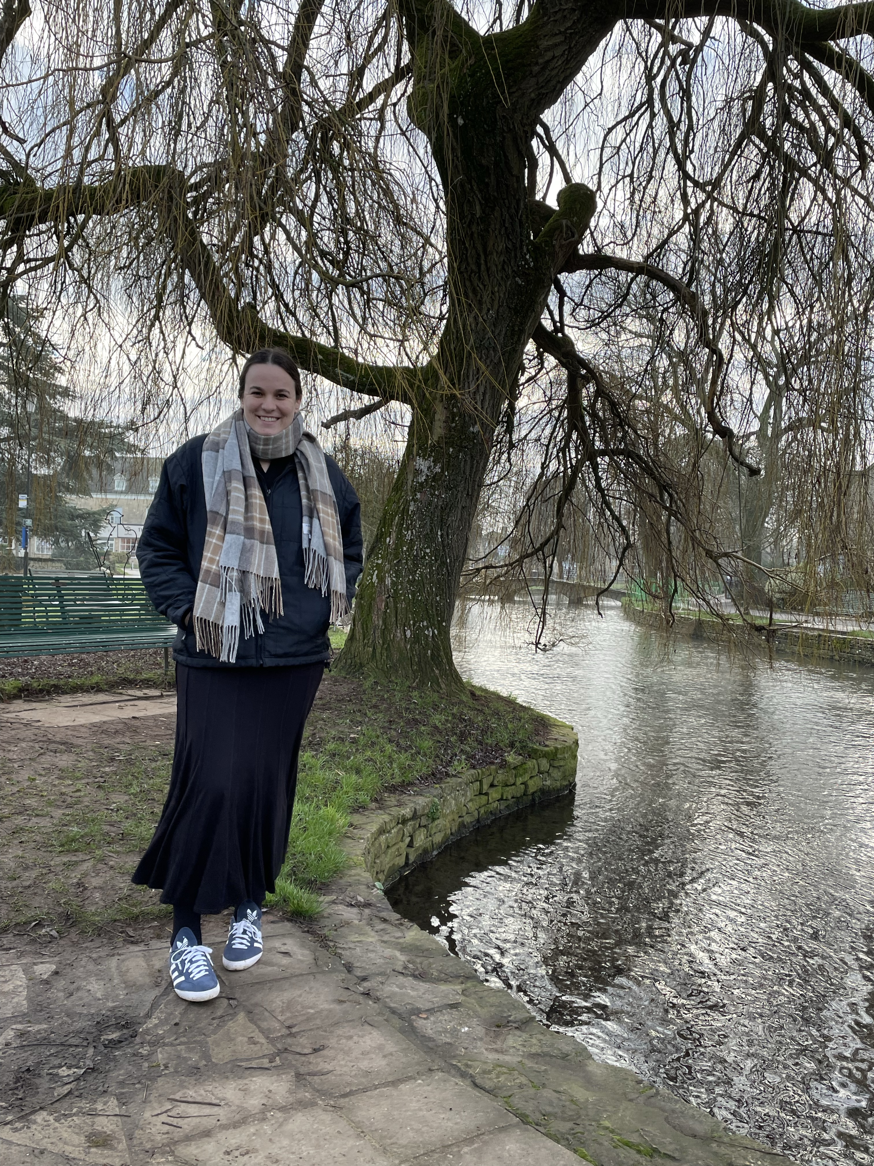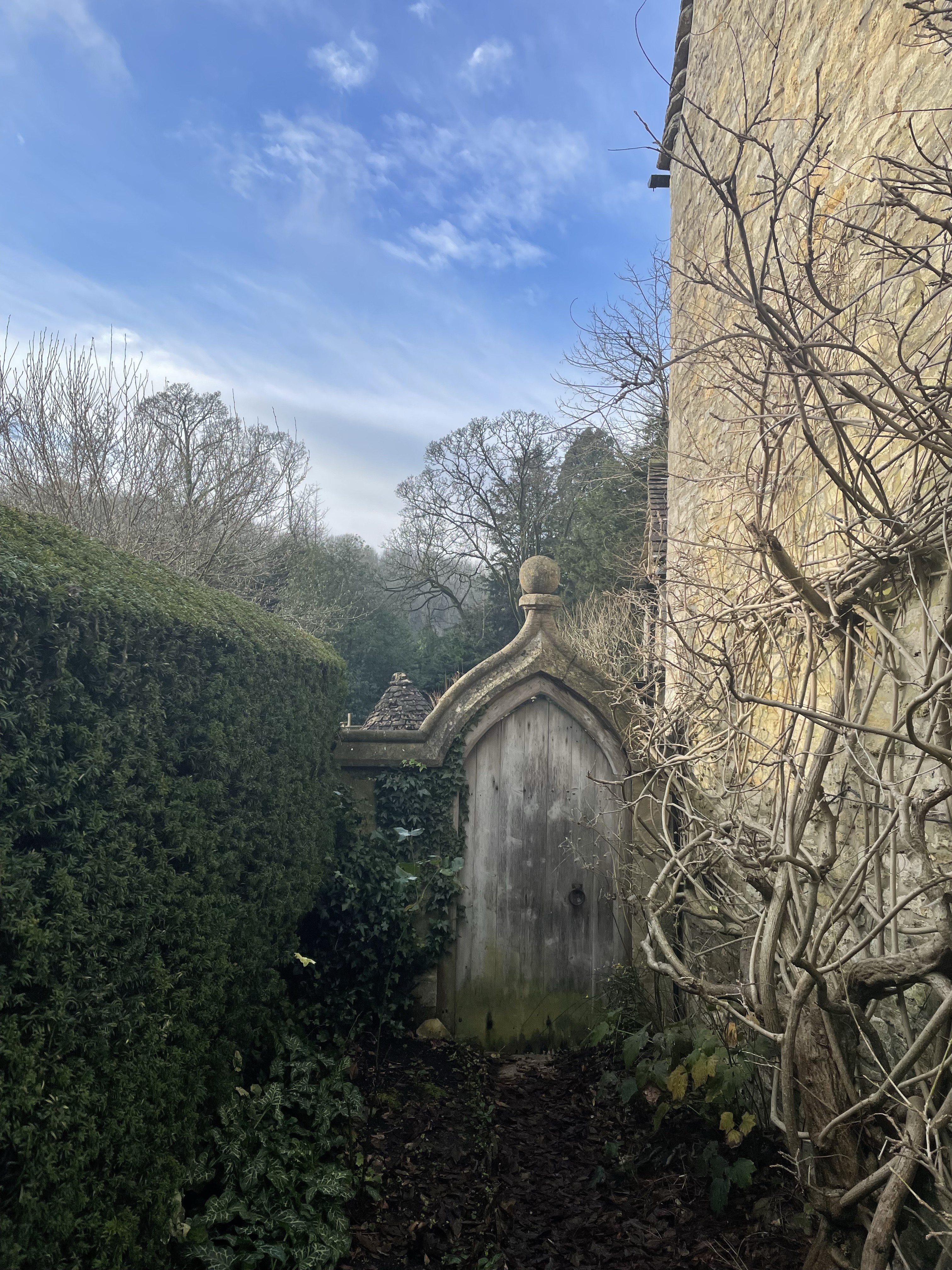 Bourton-on-the-Water is known as the ‘Venice of the Cotswolds’. I’m not sure about that, but it certainly is charming, with another river, the Windrush, splitting it in two. A crow looks back at me from atop the greenery that climbs across the exterior of the aptly-named ‘Vine House’ and, as Lucy and I cross one of the stone arch bridges to admire the window displays of perfume and pottery, a flock of ducks smack suddenly onto the water beside us.