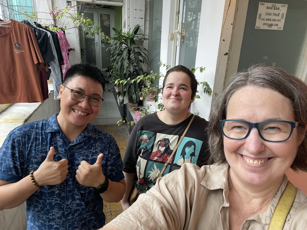 We leave at 8am, bound for 42 Nguyen Hue, an apartment building that housed government officials and shipyard workers before becoming a social media darling known as the Coffee Apartments. Getting there is more challenging than anticipated. ‘I can feel sweat streaming down my inner thighs’, I tell a harried Eva, whose own droplets are forming on her temples and chin. The heat is cloying, but nobody but us seems remotely bothered by it, slurping their soup on stools dotted all over the footpaths.