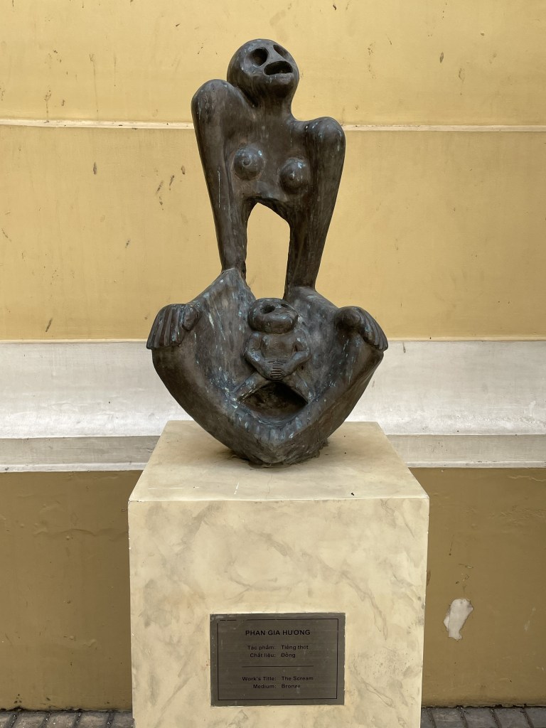 Vietnamese culture has great respect for the elderly, and this thread can be seen as strongly as the that of suffering. These sculptures of older Vietnamese women are especially evocative. The frailty and stoicism of ‘A Mother Joins the Resistance’ makes me sigh out loud. She has figured out the answer, that one, to putting one foot in front of the other.