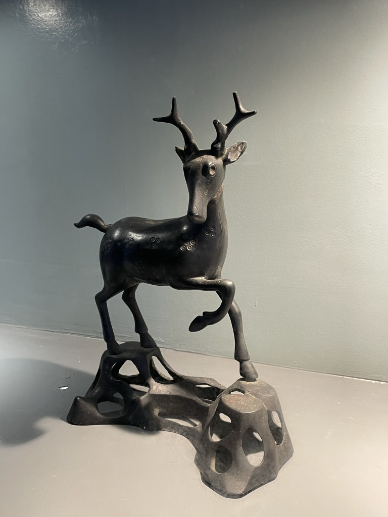 In the uppermost rooms, which house sculptures, I see some favourites in bronze; a deer, a peach-shaped incense holder, steampunk vibes.