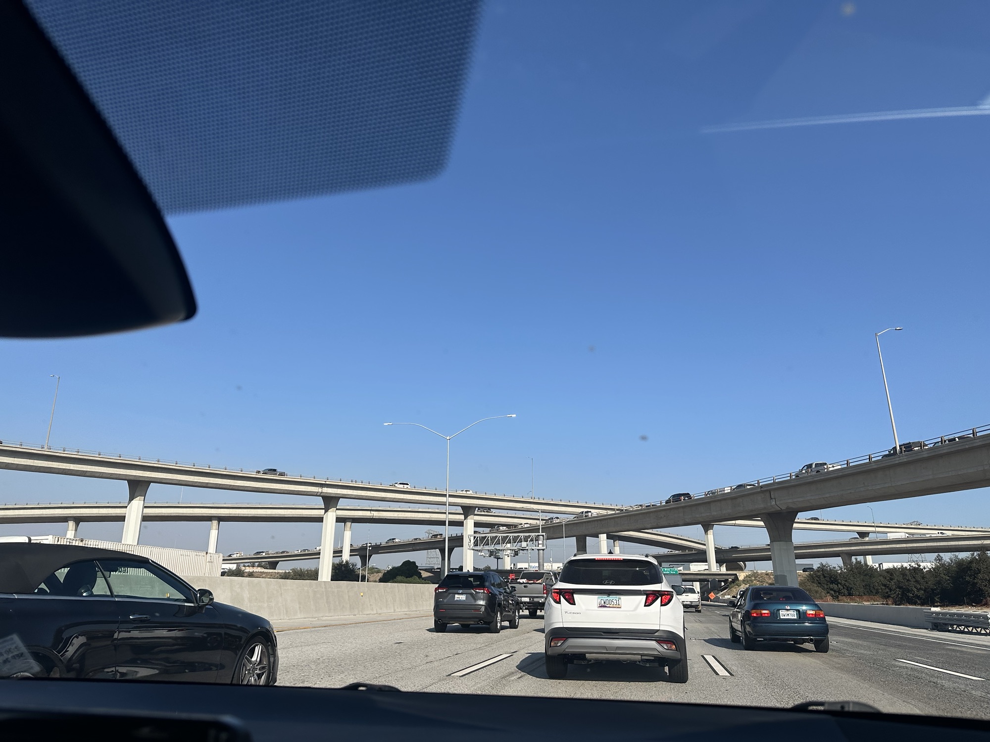 The traffic is woeful. LA drivers are rude and aggressive, and wield their vehicles like weapons. I leave a space whenever I spot a lane-change blinker, and they freeze, confused, having apparently never experienced the willing surrender of road space. As we drive, the ‘time to destination’ slowly climbs. The more we drive, the longer it will take us to get there. We are stuck in a time loop; a driving hamster wheel; a road to nowhere. A stop for truly-awful coffee costs us dearly, in dollars and time. We have forgotten the phone charger.