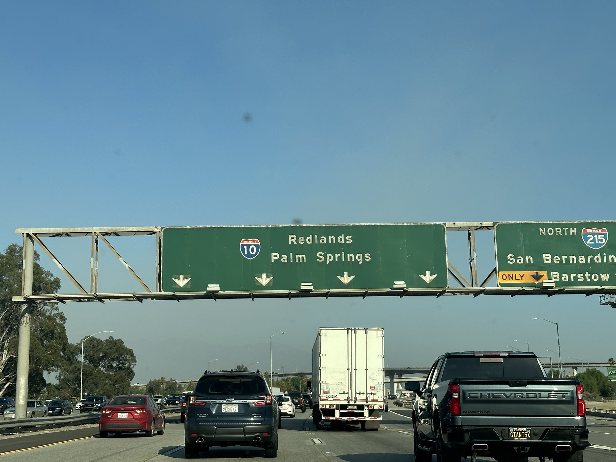 We hit the road, only to discover that our ‘time to destination’ has doubled since last night’s check. Kitty checks the flyer for the Morongo Pow Wow and starts to feel anxious that we will turn up late for the bird singing (it appears she is her mother’s daughter, after all). The calculations are now tight; Joshua Tree is the second pin to fall. One day, the hiker of my imagination will spring forth…but not today.