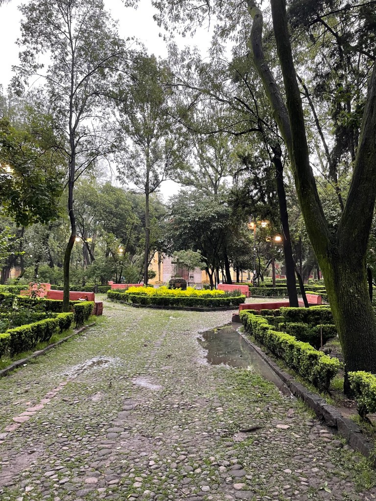 Taco-heavy, I meet Citla outside The Red Tree House at 6am, for our 5km run through one of the oldest areas in Mexico City, Coyoacán. As we drive through the darkened city streets, we compare running notes; Citla’s longest run (60km) to mine (6km), and her 25 years of trail running to my months-long resurgence of gritted-teeth laps of the local oval. I steel myself, ready to face the music.