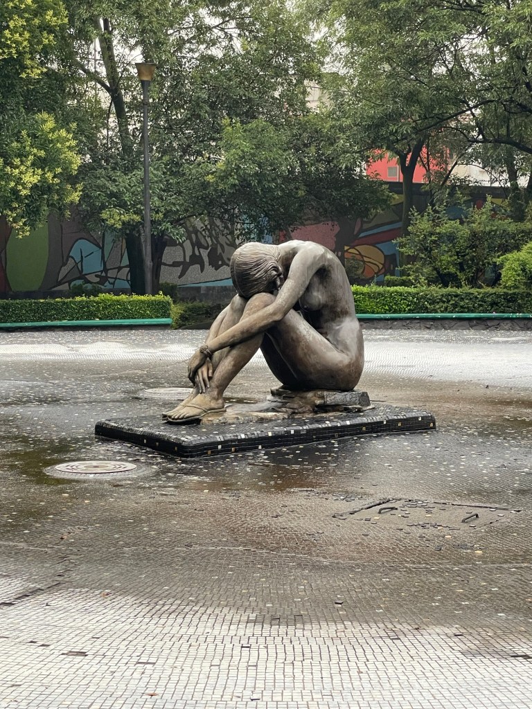 Once a public lot used for livestock auctions, Parque Frida Kahlo was developed in the 1980s to honour the artist. The sculptures of Frida and Diego, and of the woman in the fountain, are by Gabriel Ponzanelli, who lived with the artists briefly at the age of eight.