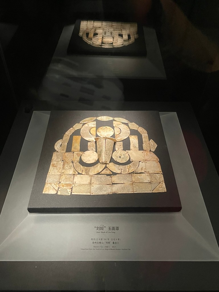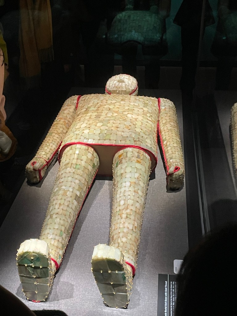 My favourite displays (and that of many others, given how hard they are to get close to) is the jade burial suits. I am particularly enthralled with the image of the cave-side location where one was discovered. The body had long since dissolved, leaving a mess of jade squares flat to the earth.