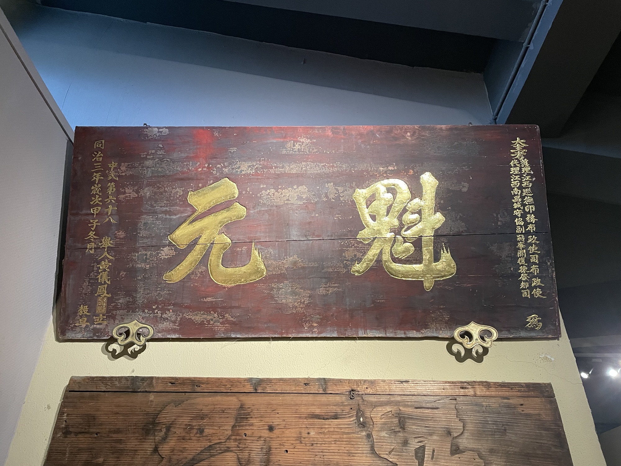 I am drawn to the items that connect to the enduring culture of scholarship in China. The first is a large banner made of wood, once displayed at the home of the student who achieved first place in the examinations.
