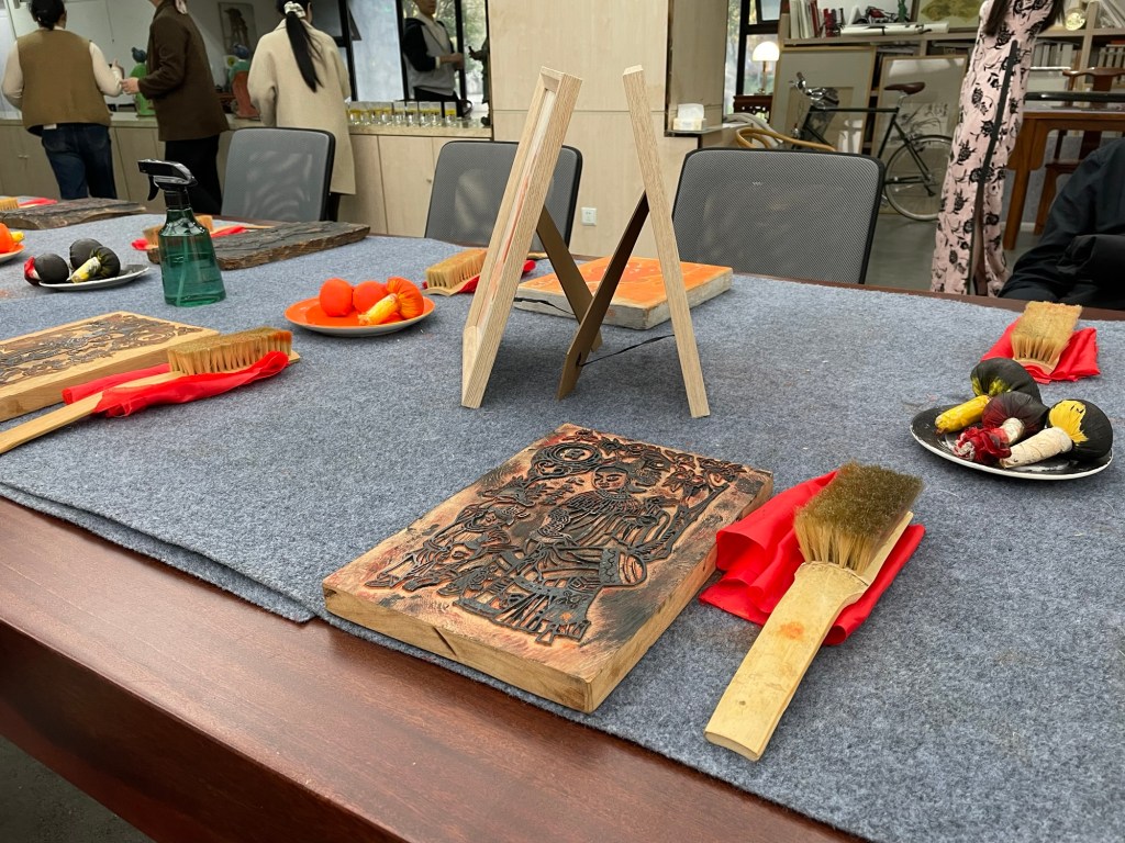 We learn how to complete a tàpiàn, or rubbing. It reminds me of school days, shading the outline of a leaf through a sheet of paper.