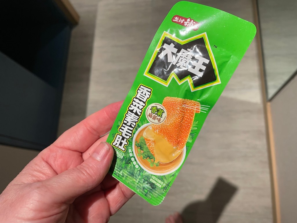 He gifts us small green packets. ‘Fragrant stomach,’ Conall translates.